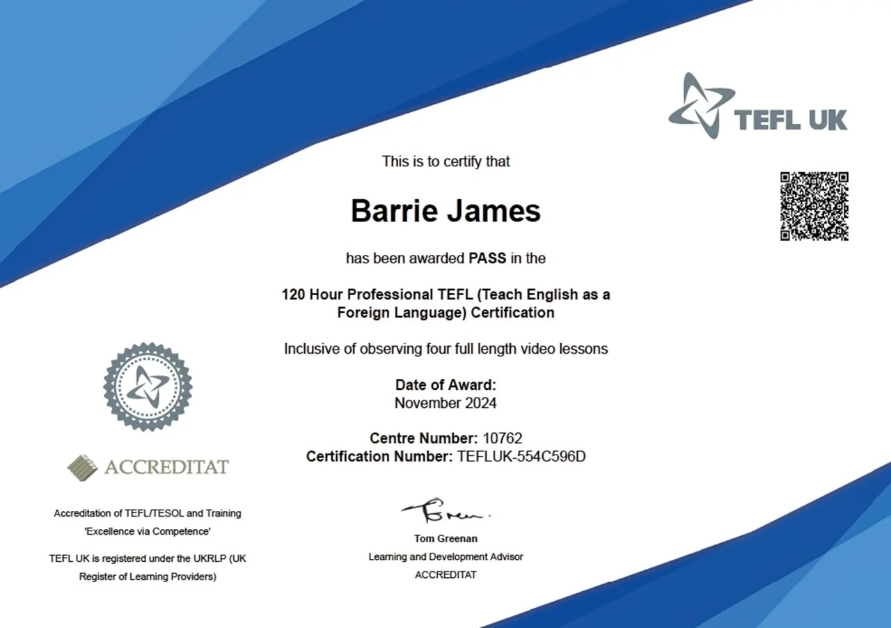 I have City & Guilds of London qualifications in Technical Authorship and Communication of Technical Information; I also hold a TEFL qualification to teach English as a foreign or second language. I enjoy teaching English, and lately, I have been teaching English online to Ukrainian refugees, which has been very satisfying.